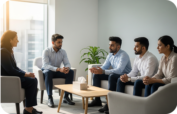Private, confidential therapy sessions for employees to talk, feel heard, and manage stress in a safe and non-judgmental space.