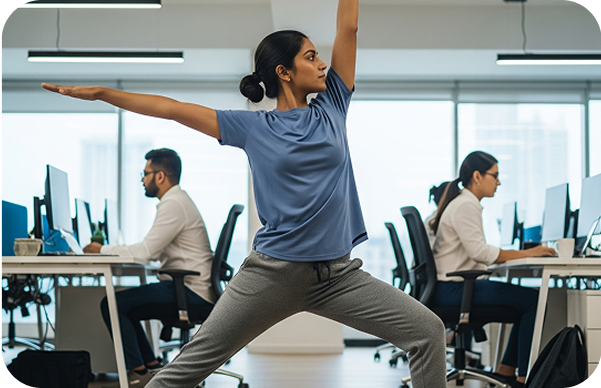 Offers a holistic reset during work hours by relieving physical tension, calming the mind, and restoring breath. Just 15 minutes can improve focus, reduce stress, and enhance well-being.