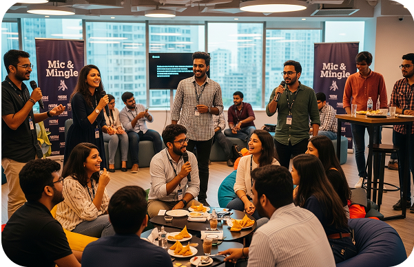 Team karaoke sessions that invite laughter, relaxation, and shared fun. Because teams that sing together, grow together!